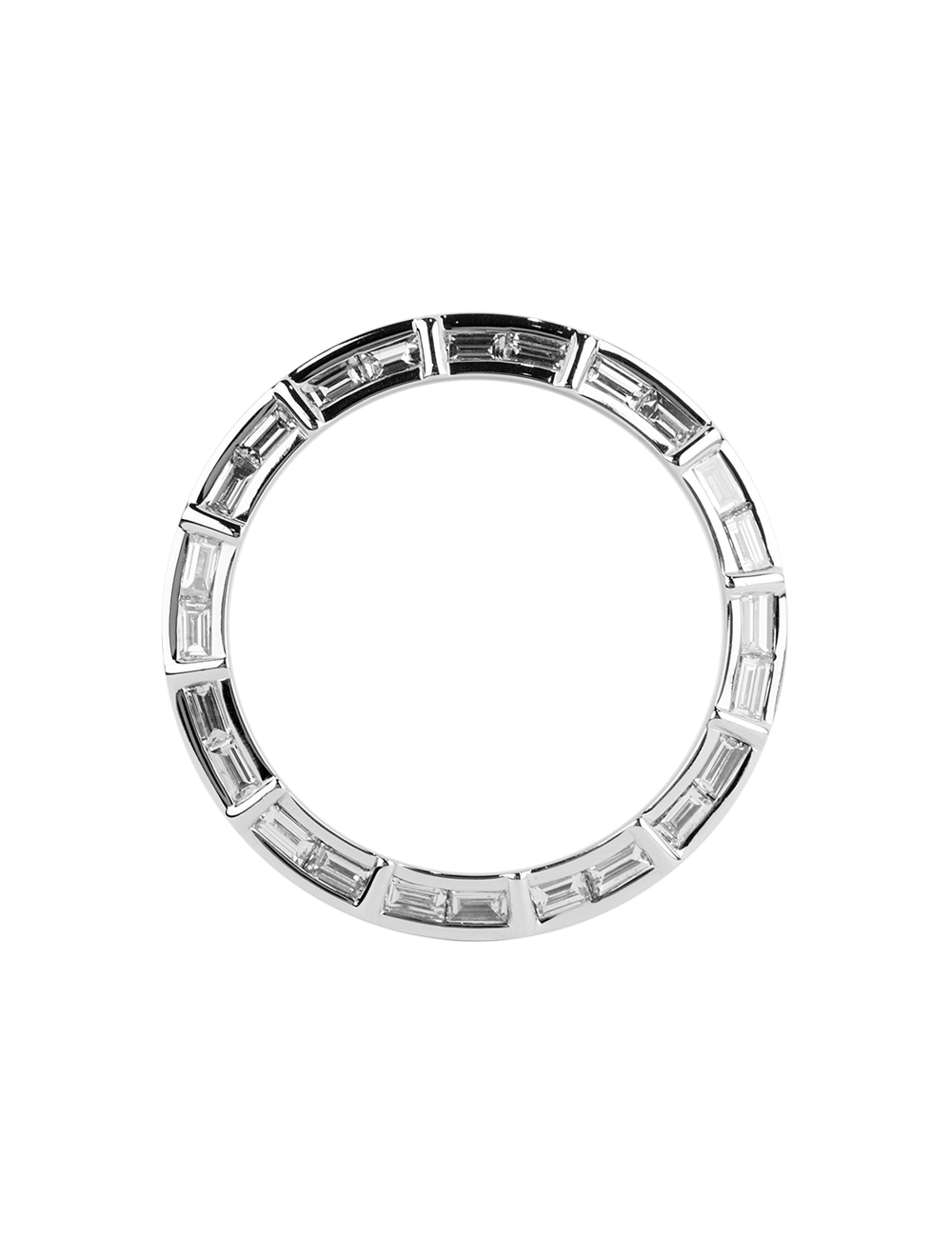 This is a custom bezel in white gold with baguette-cut diamonds for Rolex Daytona.